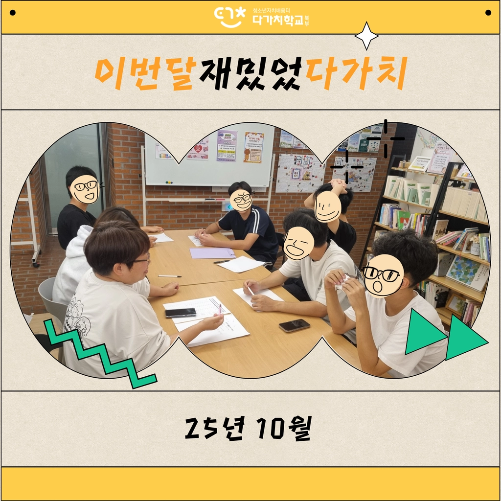 지역 사회에서 청소년의 돌봄, 배움, 성장을 지원하면 쌓아온 청소년/교육 전문성을 바탕으로 다가치학교 북부를 운영합니다.