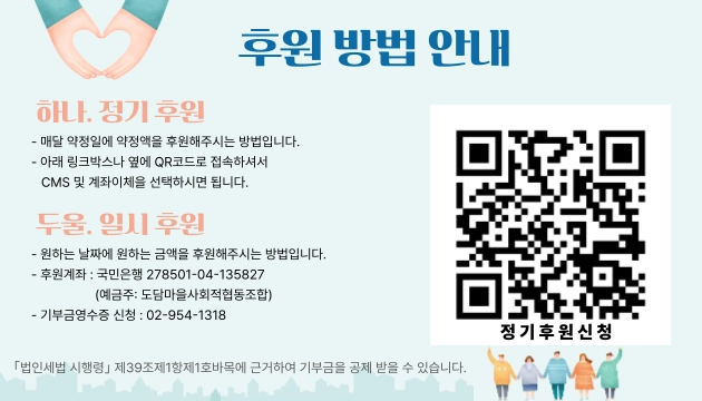 Copyright 2024. 도담마을사회적협동조합. All rights reserved.