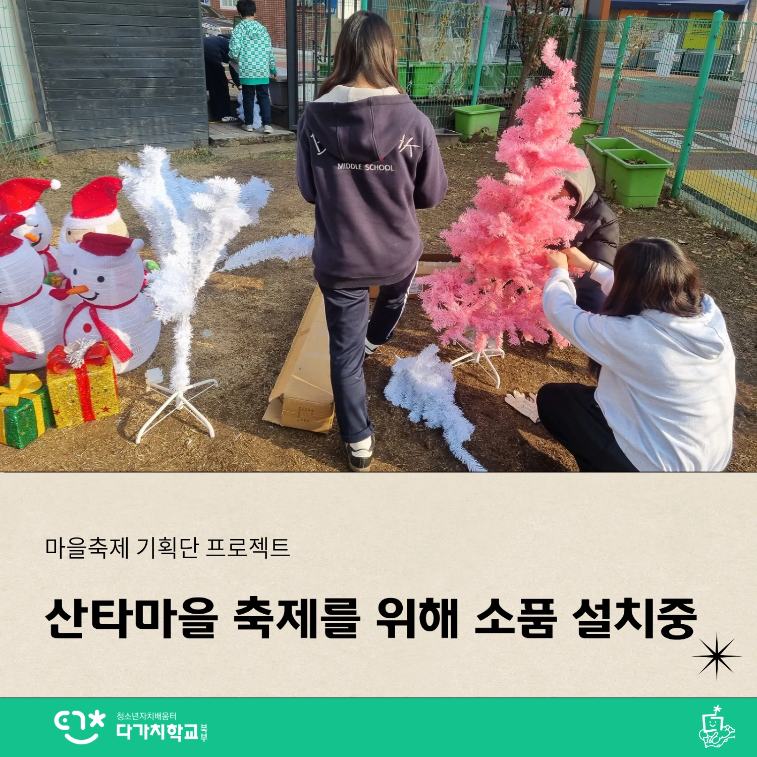 산타마을 축제를 위해 소품 설치중