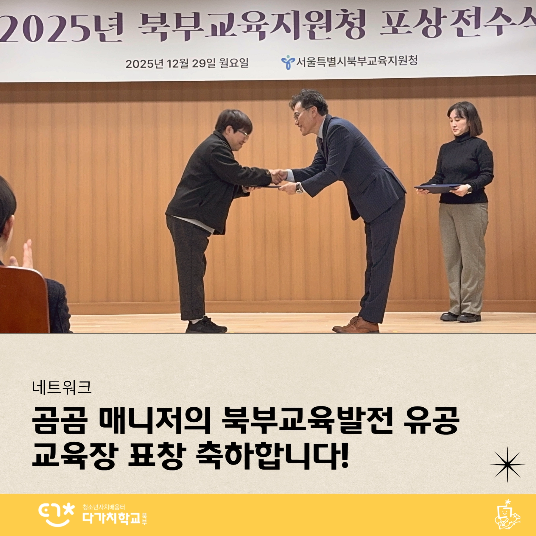 곰곰 매니저의 북부교육발전 유공 교육장 표창 축하합니다!