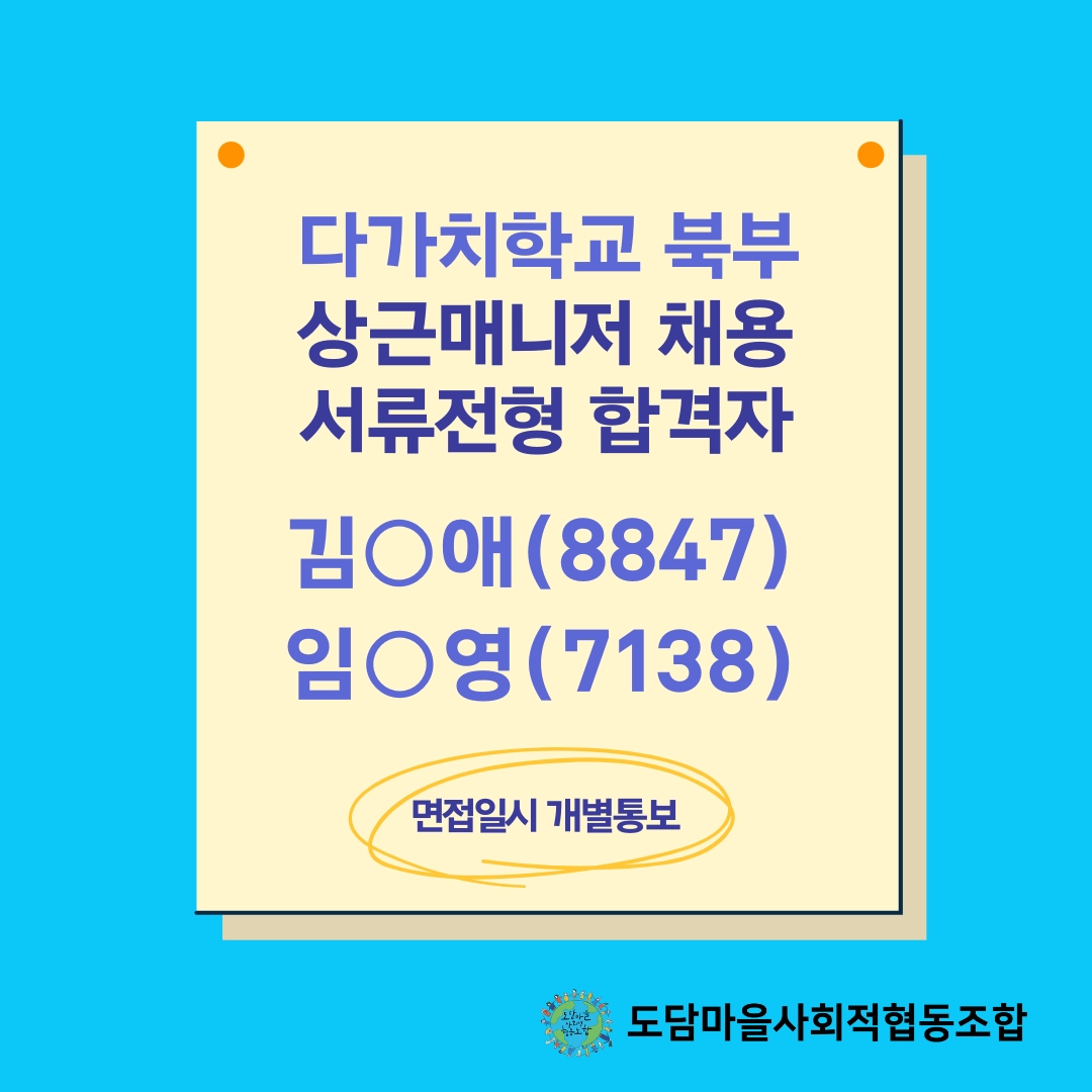 [다가치학교 북부] 서류전형 합격자 발표