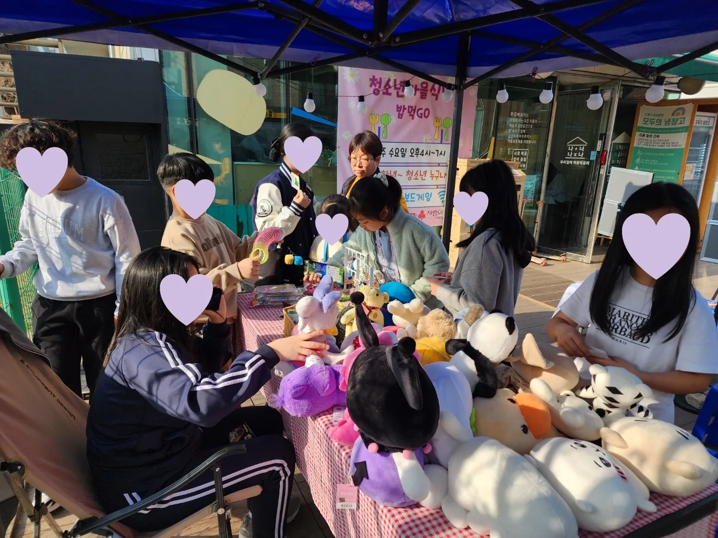 친구들을 유혹하는 방구마켓의 인형들은 2주차 조리봉사팀 ‘자오나학교’ 선생님들께서 기부해 주셨어요.